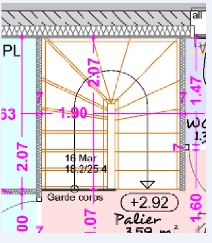 Je suis sur la planification d'un escalier double quart avec limon central autoportant en hetre et marche en chêne. Il sera dans une trémie de 2mx2m donc, globalement, longueur limon volée 1: 150cm, volée 2: 100cm et volée 3: 150cm