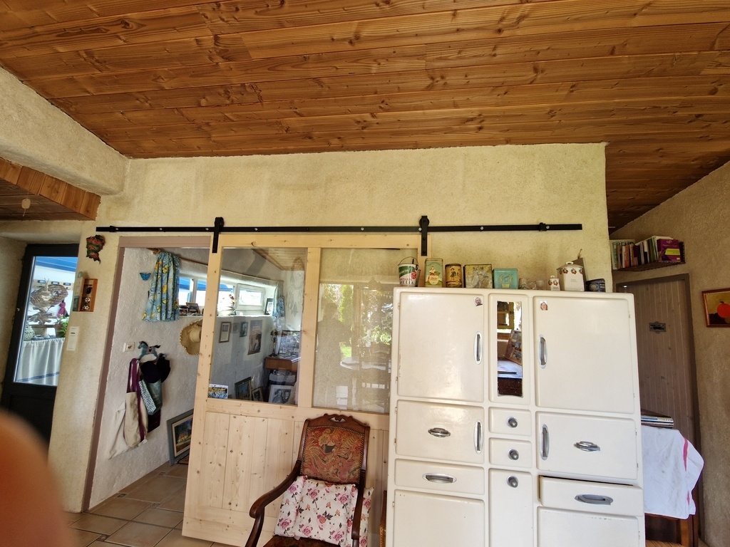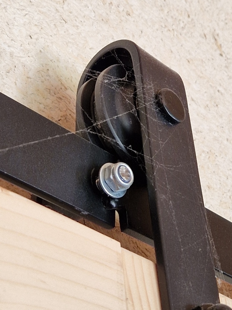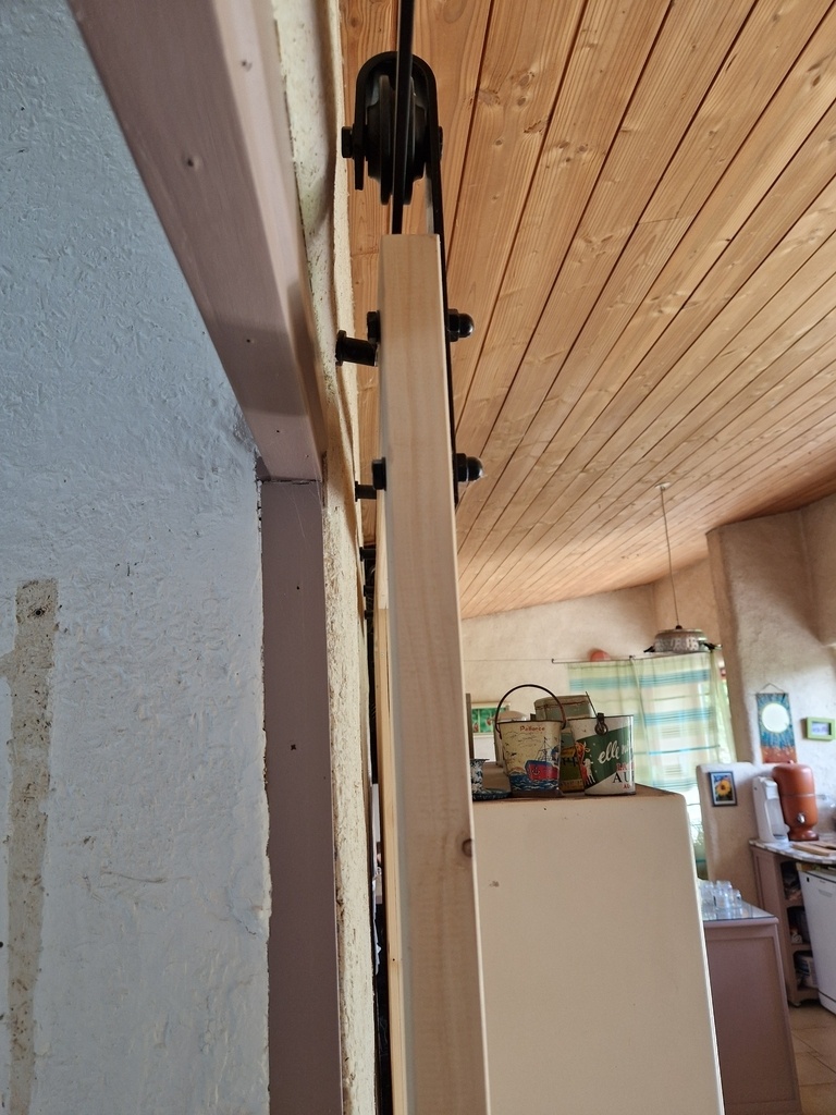 Cette porte a été installée l'année passée, c'est moins flagrant en photo mais quand on arrive, ça saute au yeux, le rail n'est pas plan du tout. Il est composé de plusieurs parties assemblées entre elles façon puzzle, le tout fixé de façon assez chaotique.