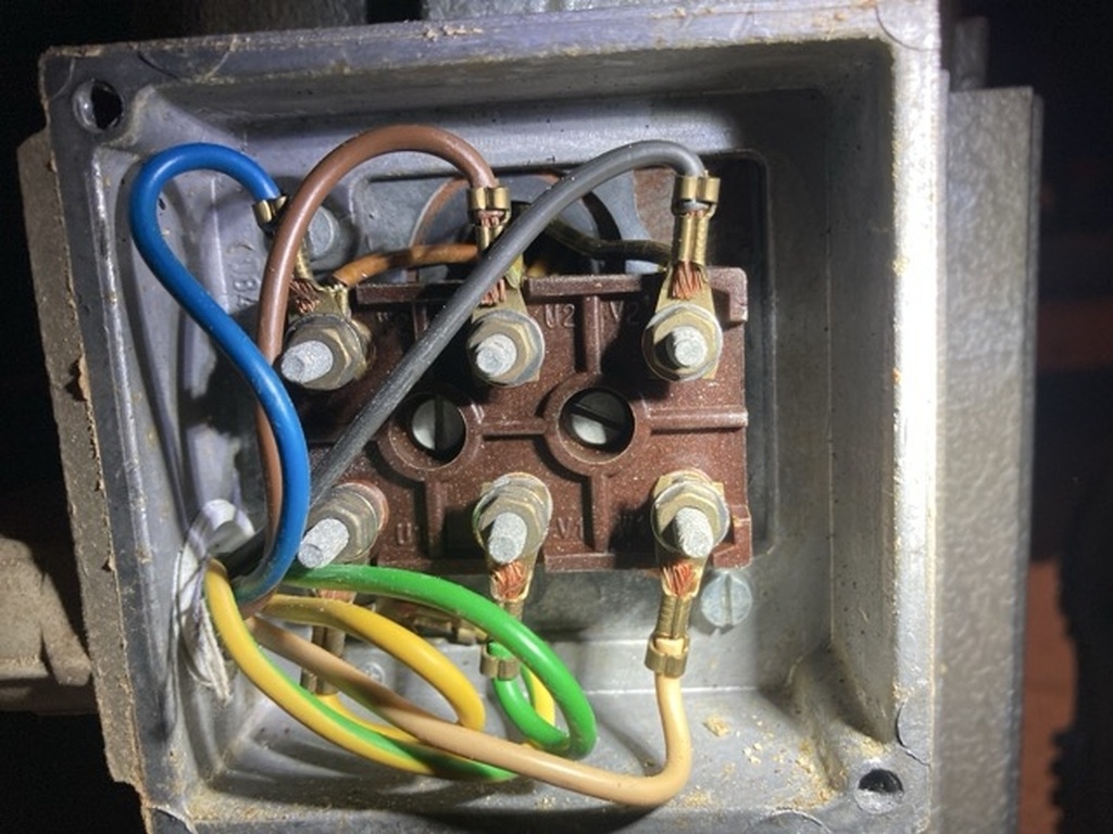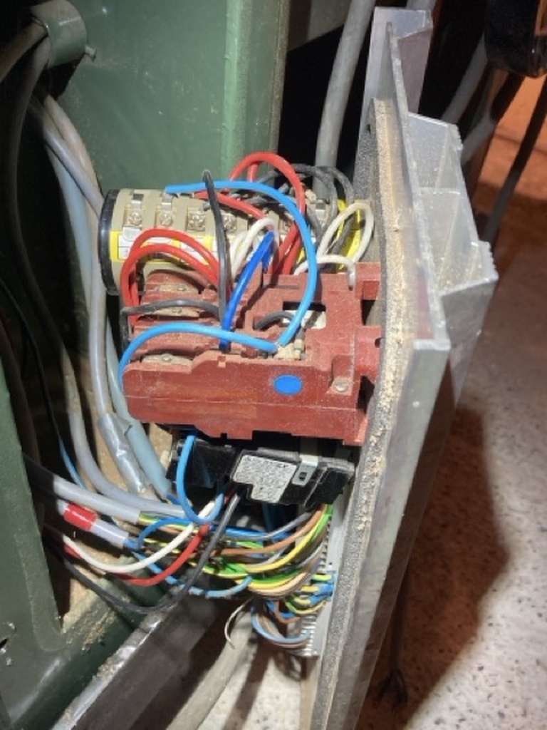 Le vendeur de la machine (un menuisier retraité) m'a assuré que la Robland pouvait fonctionner en tri 220V. Après vérification des plaques signalétiques des moteurs, c'est possible effectivement. J'ai donc démonté le couvercle du bornier d'un des 4 (?) moteurs, le plus accessible, espérant midifier simplement la position des barettes pour passer d'étoile à triangle. Mais je ne vois point de barrettes sous le capot. Le câblage me semble plus complexe, étant donné que la machine est équipée d'un sélecteur de fonction sur le panneau de commande général et de boutons poussoirs individuels pour les différents moteurs.
