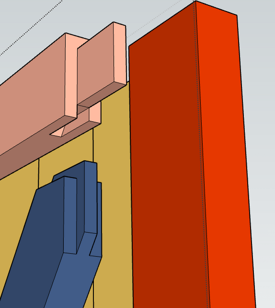 Je pense faire des assemblages tenons-mortaises entre montants et traverses, ainsi que sur l'écharpe en diagonale, comme sur les photos jointes.