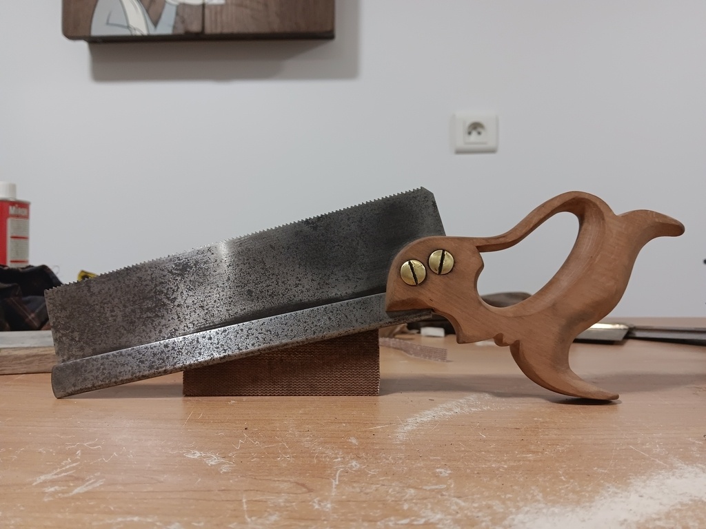 Voici la première scie terminée (ou presque) mais pour pouvoir finir les autres il me faut du bois pour changer au moins un manche...