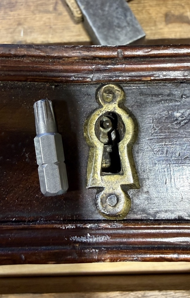 Bonjour, pour les petits tiroirs d’un chevet ancien je cherche désespérément de toutes petites clefs que je ne trouve nul part. Le meuble doit être fin 18ème début 19ème, sur la photo on peut voir que le penne doit mesurer 4 ou 5 mm. Merci pour votre aide.