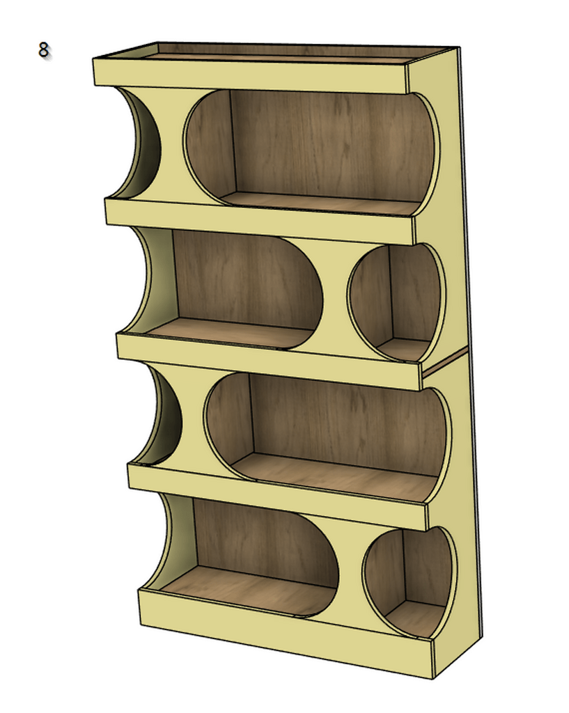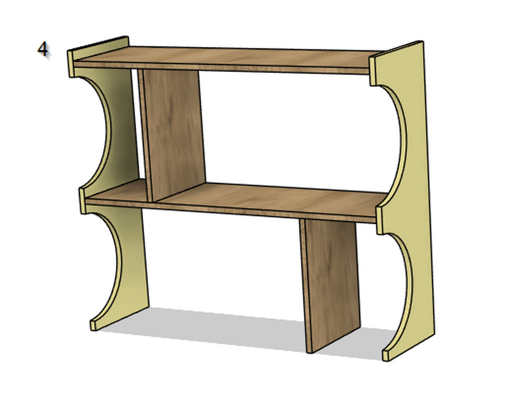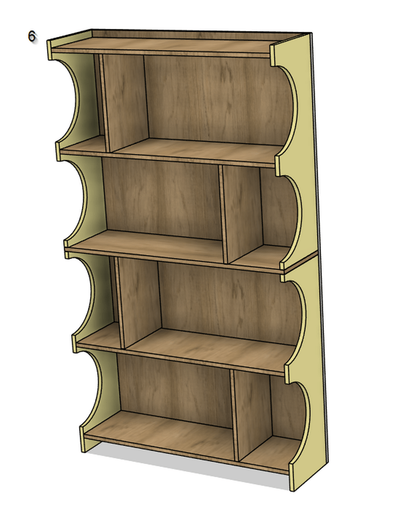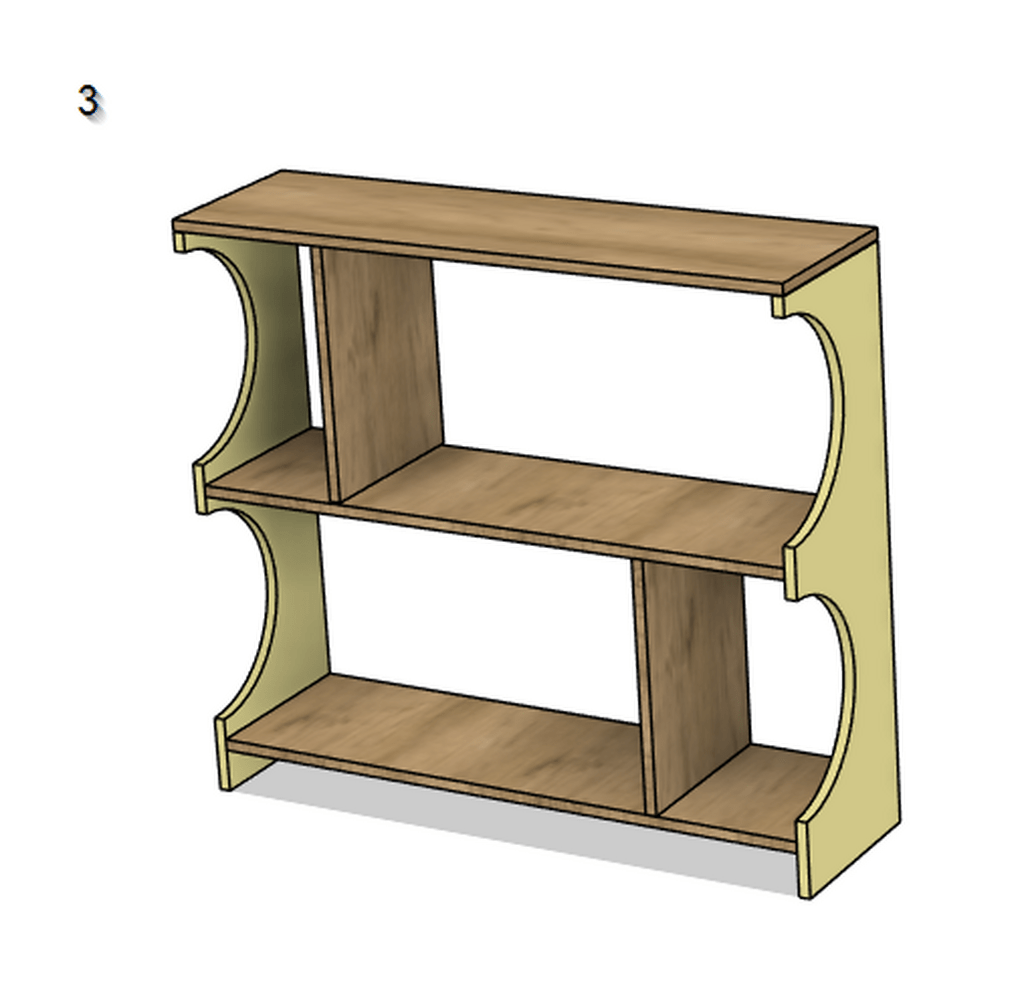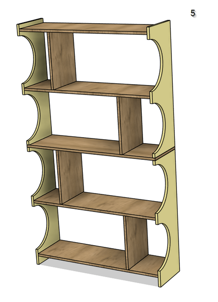 J’ai dessiné l’étagère suivante, et je me pose des questions sur sa réalisation et particulièrement le montage. Je compte utiliser tourillon + colle mais je pense que ma question serait la même avec des dominos: comment réaliser le montage du meuble une fois les découpes / peintures faites, dans quel ordre?