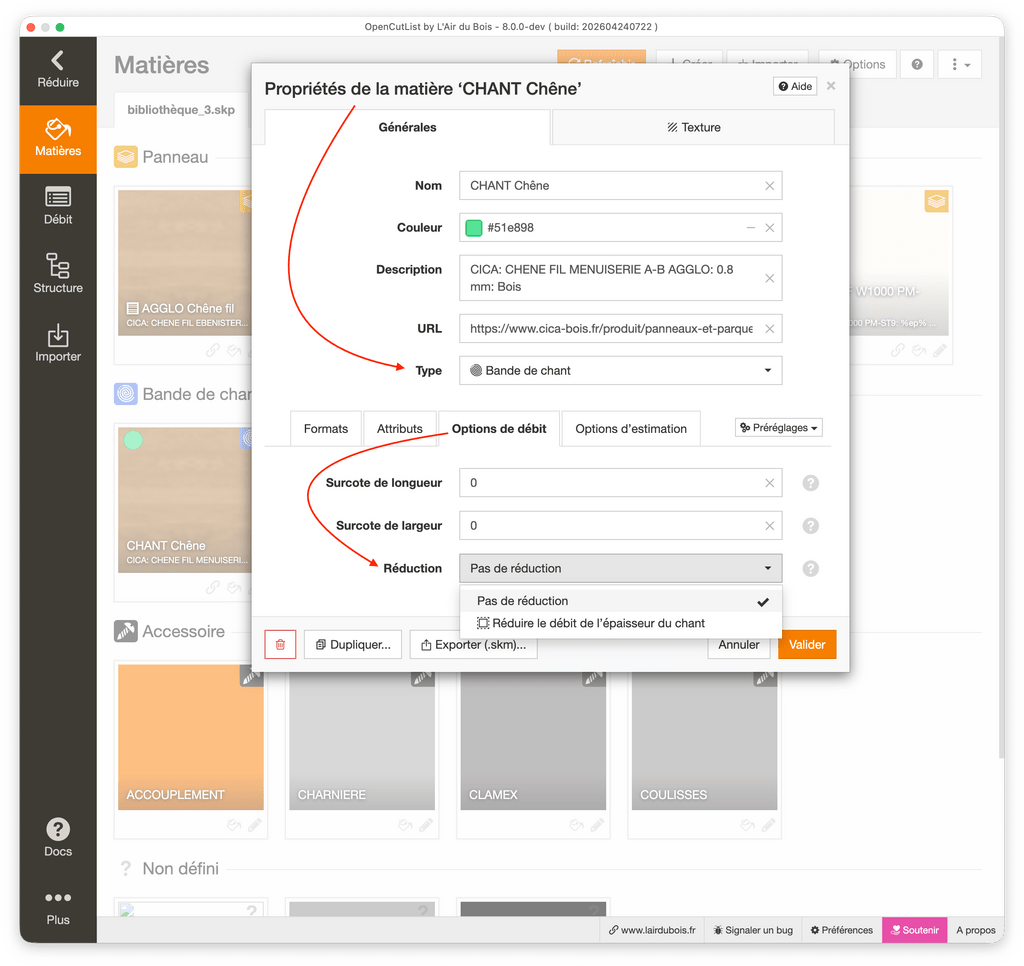 Les dimensions de débit ne contiendrons alors pas la déduction de l'épaisseur du chant.