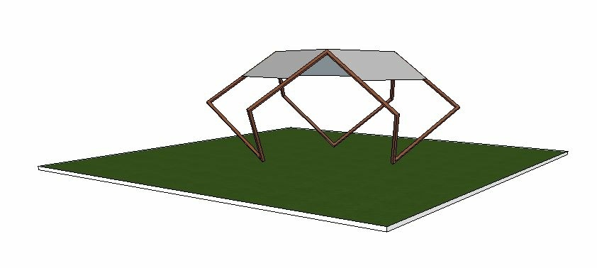 Si tu veux faire une structure originale, regarde du coté des structures géodesiques, et la notion de tensegrity, qui joue sur les triangulations, l'équilibre des tensions et compressions.