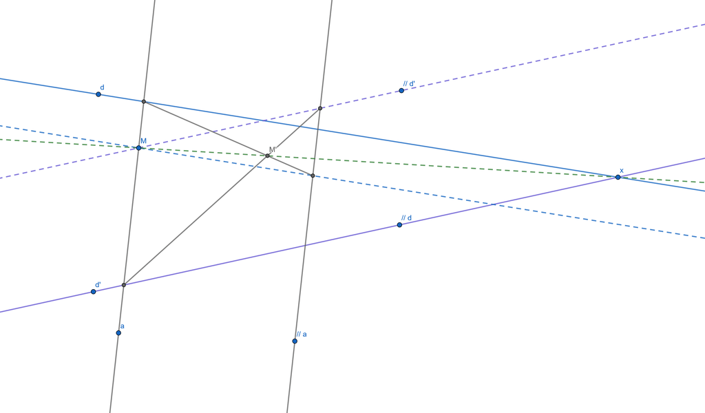 Je précise que les droites et le point M sont totalement aléatoire. Certaines réponses explorent même avec un point M extérieur aux droites (d) et (d').