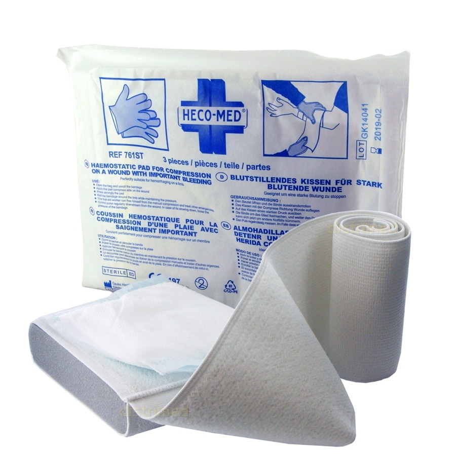 - Un coussin hémostatique (Pour pouvoir faire un pansement compressif efficace et facilement)