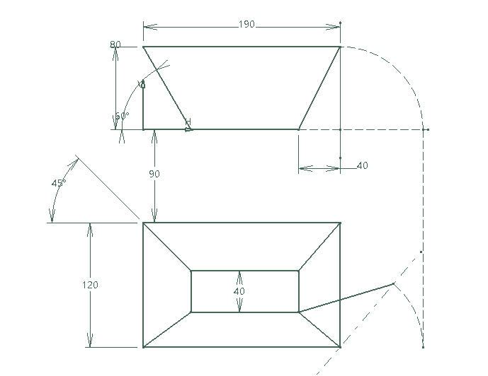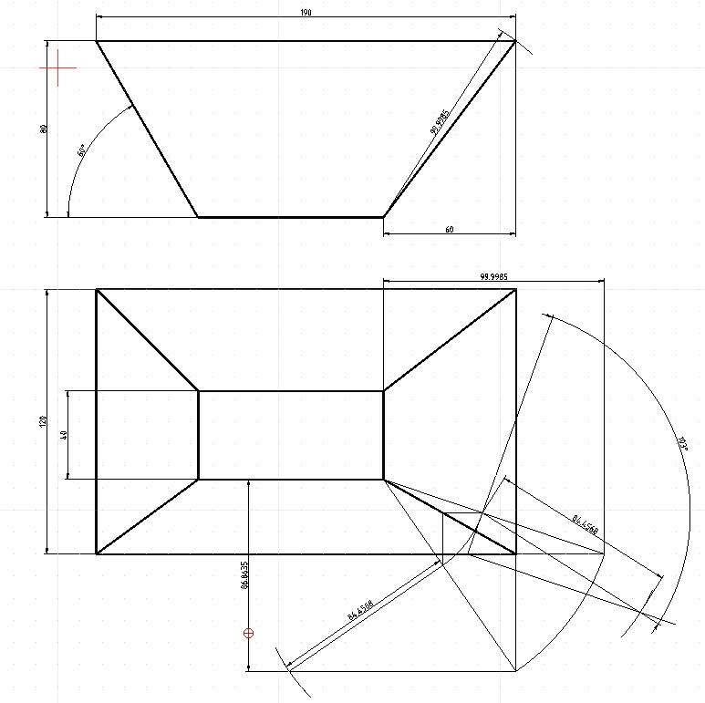Le plan de définition du flan bas, dessiné avec une épaisseur de 4 cm, avec assemblage à mi-angle, pour info !