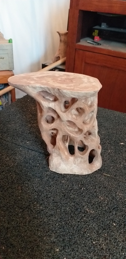Sur cette pièce qui est en poirier et pas encore finie, il y a pas mal de bois "pourri" (blanc), pensez vous qu'il est possible de le stabiliser ? Le but est de faire une teinte sombre (ébonisation peut être ?) et passer soit une huile soit un vernis (mais il ne faut pas que ca brille), ca reste à définir et à tester (ou une laque ??).