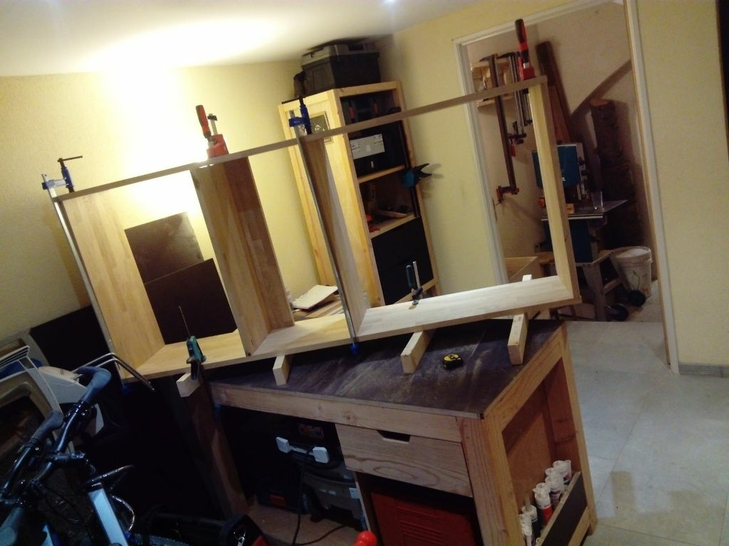 Pour les autres caisson ( porte et étagère) il faud un fond et le chapeaux c est pas mal aussi cela fait plus fini a mon goût ( une traverse t obligera a plaqué tous les chants de la traverse alors qu un chapeau complet tu ne plaque que le chant av).