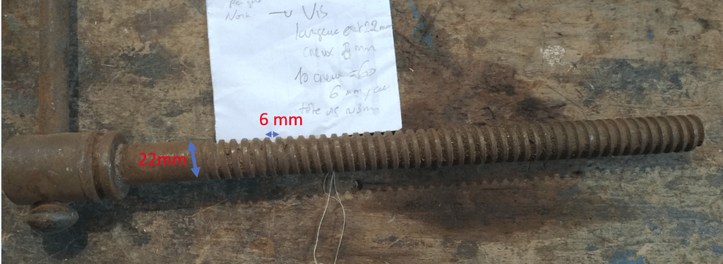 Le pas de vis est de 6mm / la vis a une largeur de 22min et les filets ont 3mm de profondeur.