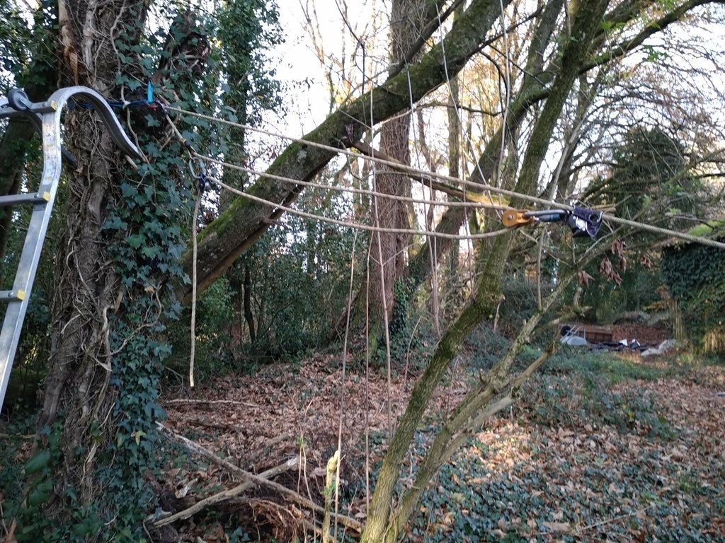 Chez un collègue chez qui je bosse en ce moment, un noyer est tombé récemment mais doucement, il s'est appuyé contre le hangar.