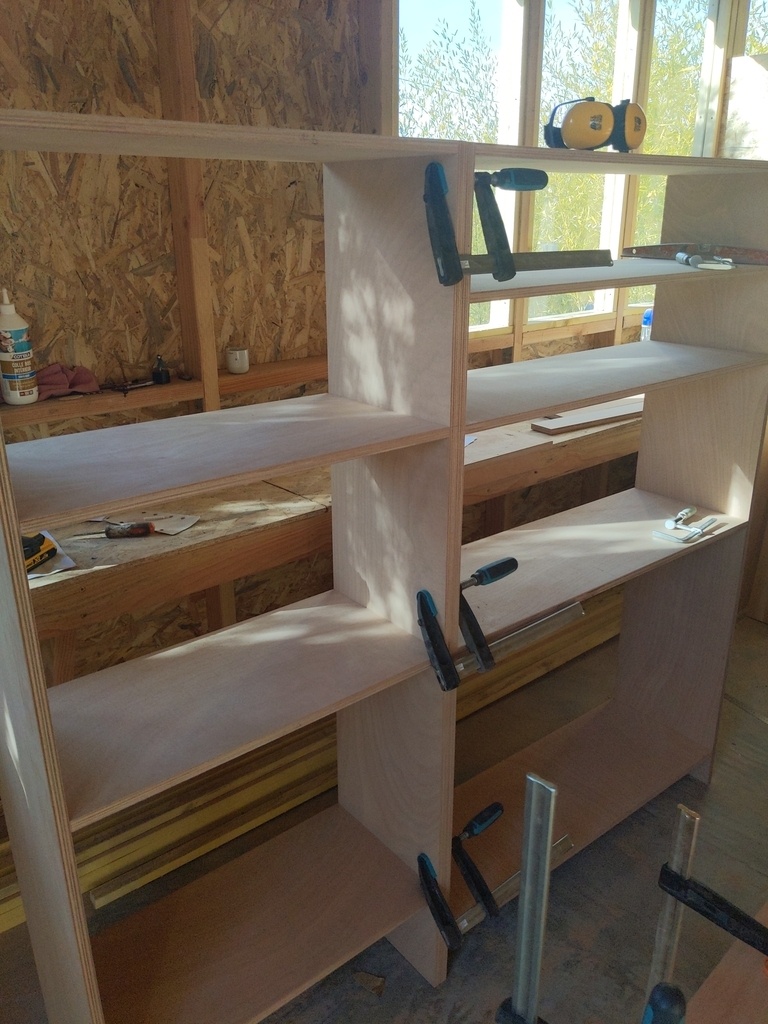 Au final j'ai utilisé ma fraise en T et une vis j'en ai mis 4 proche de la facade ce qui est le plus important pour moi car je ne voulais pas d'espace entre les etageres.