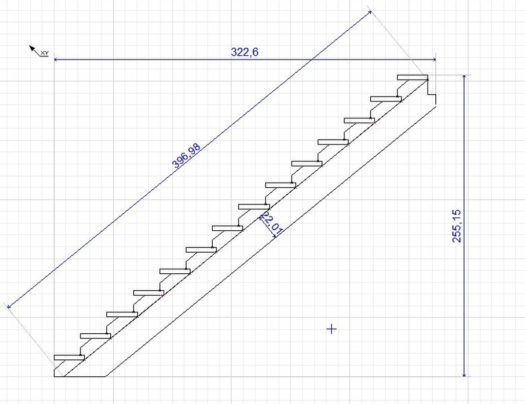 Je suis en train de construire un escalier droit, à double limon à crémaillères rapportées, la hauteur à franchir est de 2m55, la largeur de l'escalier est de 900 mm, les limon centrés ont 700 mm d'entre axe.