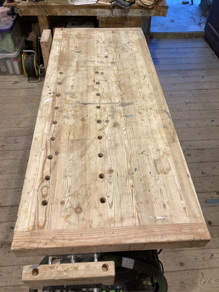 Je suis en train de finir mon établi construit en beau mélèze des Alpes.