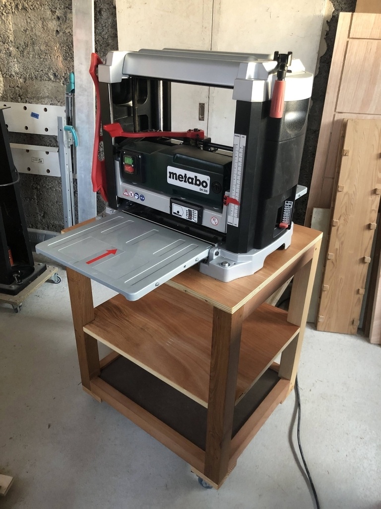 Raboteuse en marche, même sans bloquer les roulettes, le support ne bouge d'un millimètre.