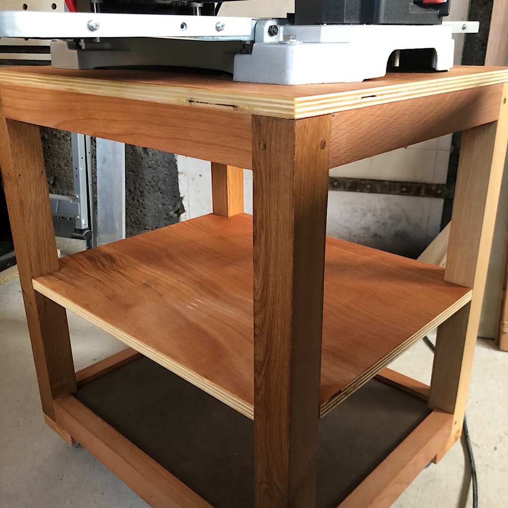L’idéal serait un support tabouret bois en arêtier et machine fixée dessus ! (effet tréteau et anti-vibrations sur 4 cotés).