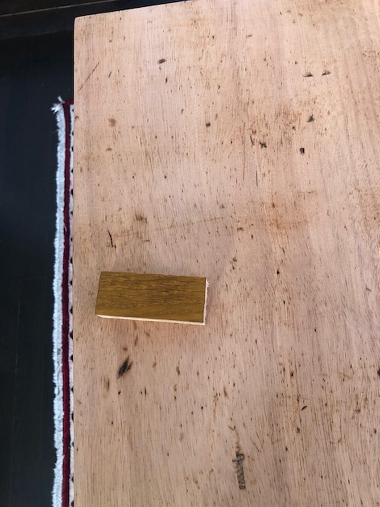 J'ai déjà teinté au chêne moyen mes retouches de mastic, mais je ne sais pas si la teinte finale va bien prendre dessus comme le reste du plateau... (le rebouche trou devient très clair après ponçage, on voit que ça n'a pas le même rendu que la teinture finale..)
