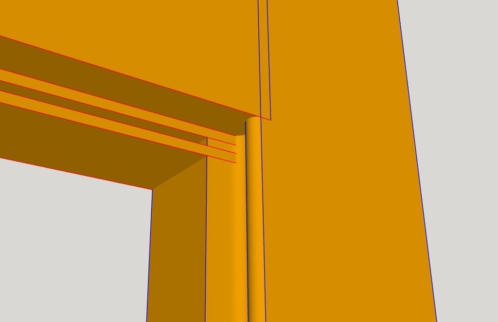 je souhaite que le profil du montant soit imprimé sur ma traverse. J'ai essayé intersection des faces dans tous les sens. J'arrive qu'à imprimer les lignes de la traverse sur le montant et non l'inverse.