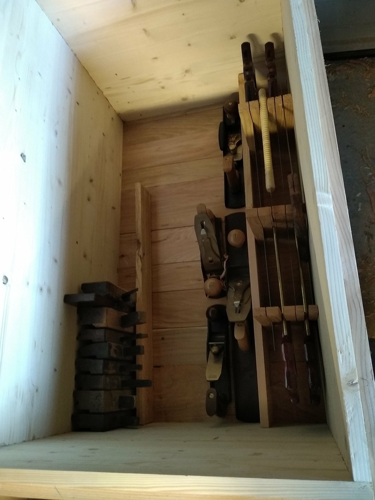 En effet, ça avance. Ça prend du temps je trouve de décider comment agencer les outils, pour que ce soit accessible tout en restant compact et en mettre un paquet.
