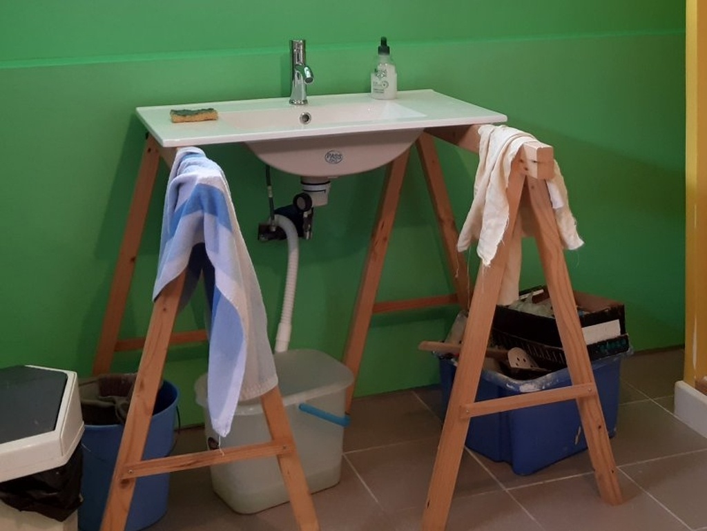 Notez que le box en placo™ à l'arrière n'est pas peint, c'est fait exprès ! C'est la notion de "tolérance aux pannes" ou "résilience" comme on dit maintenant, car ce modèle a l'anti-giclure intégré à la conception : si l'eau gicle sur le placo, eh bien ce n'est pas grave, on ne risque pas d'abîmer la peinture puisqu'il n'y en a pas. Hé oui il suffisait d'y penser, heureusement je m'en suis occupé pour vous (de rien, de rien) !