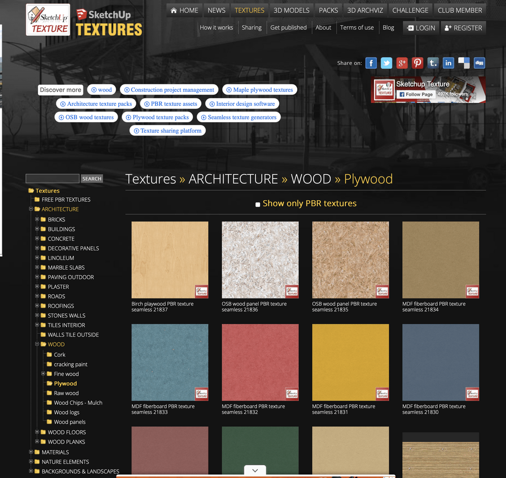 Site de partage (non gratuit) de textures et modèles 3D adapté à Sketchup et autres logiciels 3D.