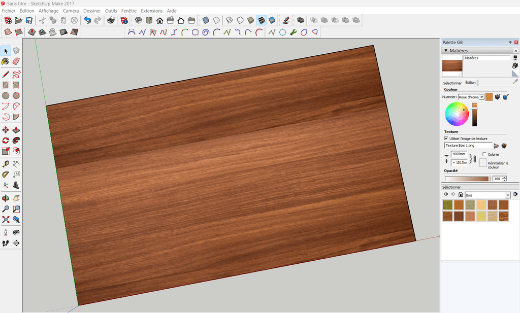 Personnellement je les crée en créant un nouveau matériau pour lequel je télécharge une image (bois ou autre) trouvée sur internet.