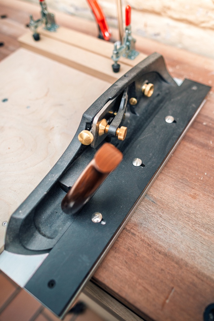 Pour moi, avec ce type de prise en main, il faut une planchette (sur la photo ci dessous le truc noir en HDPE) pour guider le rabot.