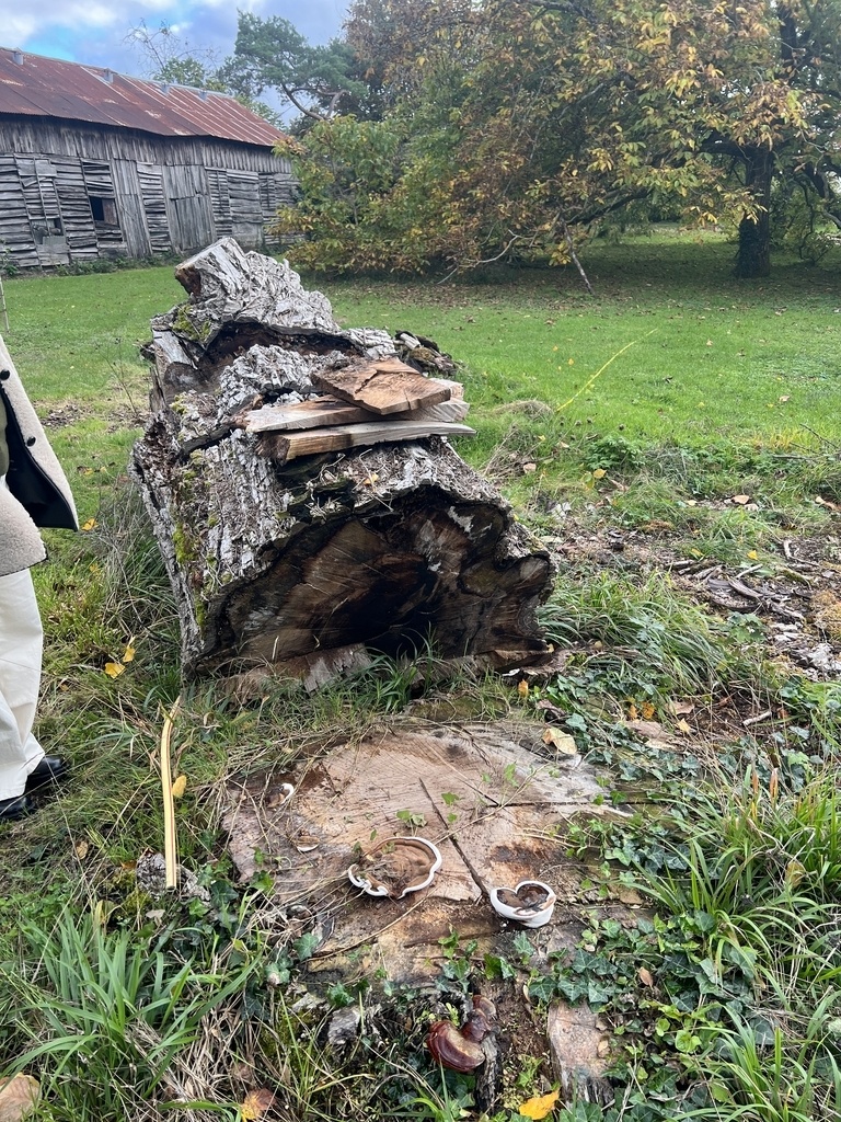 Le noyer planté par mon arrière-arrière-arrière grand-père dans les années 1850 est mort. Bien triste car il était magnifique, près de 30 mètres de haut et de large. Il était classé Arbre Remarquable et nous profitons toujours du stock d'huile de noix qu'il a produit.