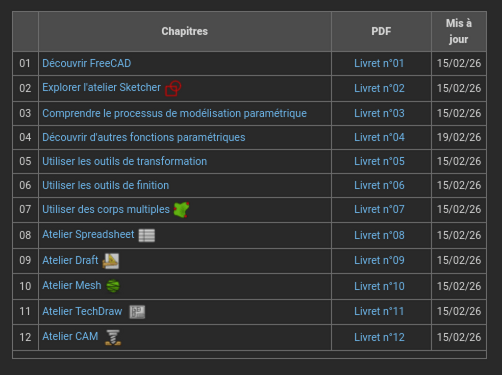 Voici une suite d'exercices avec une progression pédagogique et des corrigés vidéos : lachiver.fr/Ac...co/FreeCAD.html